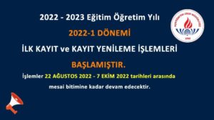 1) Açık Öğretim Lisesi 2022-1 Dönemi ilk kayıt ve kayıt yenileme işlemleri 22 AĞUSTOS 2022 – 7 EKİM 2022 günü mesai bitiminde sona erecektir.
