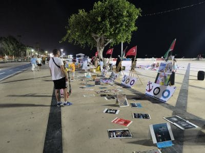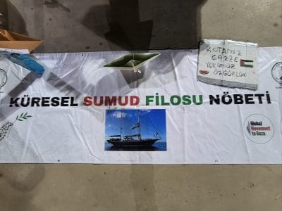 Program, akşam 19:30 — 22:30 saatleri arasında sürüyor. Nöbetlerde, İsrail’in Gazze’deki saldırılarında yaşamını yitiren bebek ve çocukların fotoğraflarından oluşan bir sergi açıldı. Etkinlikte, Filistin’e destek çağrıları yer alıyor; genç aktivistler filonun güvenliği ve insani yardımın ulaştırılması çağrısını ön plana çıkarıyor.