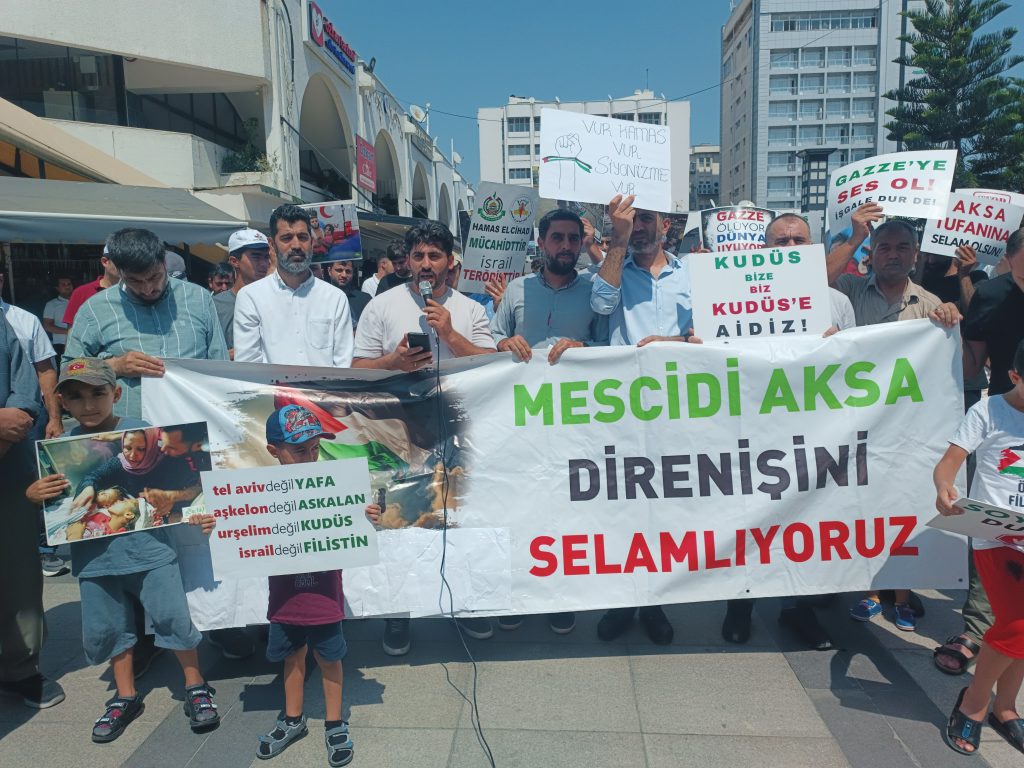 HAMAS’ın, dünyanın çeşitli bölgelerindeki Müslümanları ve insan hakları savunucularını, 23 Ağustos Cuma günü gösteri yapma çağrısında bulunması üzerine Mersin Peygamber Sevdalıları Ulu Camii’de halkın yoğun katılımıyla basın açıklaması düzenledi.