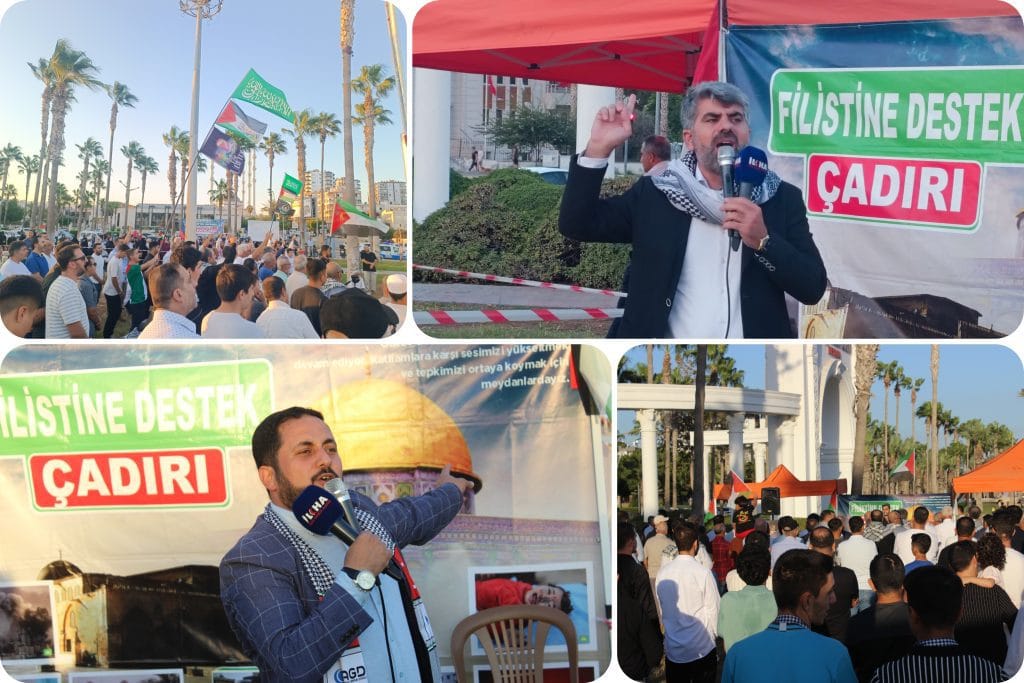 HÜDA PAR Mersin Milletvekili Faruk Dinç ise konuşmasında, Filistin için artık sözün değil, fiili adımların gerektiğine dikkat çekerek, “Gazze ile ilgili söylenecek sözler tükendi. Artık eylem zamanı. Mitingler yaptık, Meclis’te kanun teklifleri sunduk, ancak Gazze’deki soykırım durmadı. En son ‘Küresel Vicdan Yürüyüşü’ ile Refah Sınır Kapısı’na dayandık. Oradan da bir sonuç alamadık.” açıklamasını yaptı.