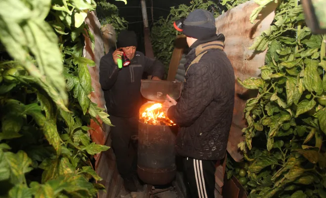 Seradaki domates fidelerinin don vurmaması için soba yaktıklarını belirten Yılmaz, “Geçen yıl fazla zirai don olmamıştı iki gün falan olmuştu bu yıl daha soğuk ve hava soğuk gidiyor. Şu an sobalarımızı yaktık, derecemiz istediğimiz seviyeye geldi ve ürünleri don vurmaması için sabah saatlerine kadar nöbet tutacağız. Bu sene aşırı soğuk hava dalgası var. Bitkileri korumak için sobaları yakıyoruz.” diye konuştu.