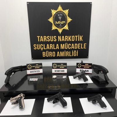 Uyuşturucu maddelerin yanı sıra 3 tüfek, 7 tabanca ve 1034 fişek de polis ekiplerince bulundu.