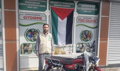 Mersin’de bir hayırsever, motosikletini Gazze’deki mazlumlara Umut Kervanı aracılığıyla bağışladı.