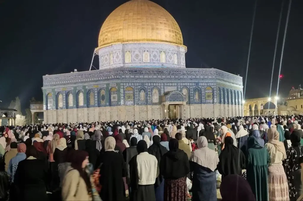 Kudüs İslami Vakıflar Dairesi, “Yaklaşık 90 bin kişi Mescid-i Aksa’nın avlusunda yatsı ve teravih namazlarını kıldı. Bunların çoğunluğu Kudüs şehri sakinleri veya 1948’de işgal edilen topraklarda yaşayanlardan oluşuyordu.” açıklamasını yaptı.