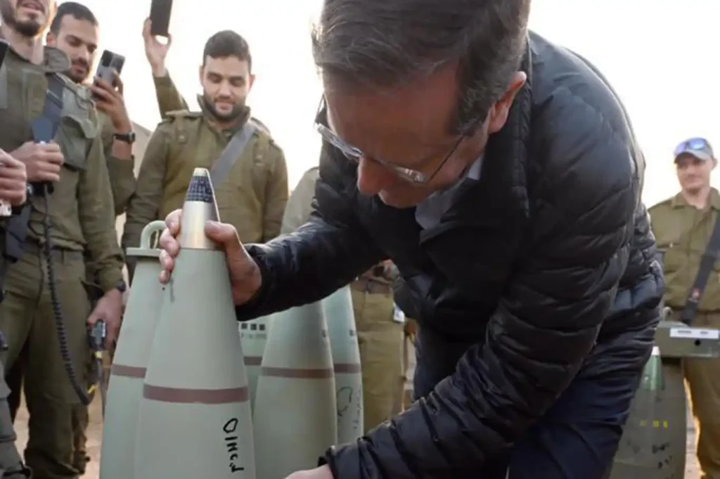 Siyonist işgal rejimi sözde Cumhurbaşkanı Isaac Herzog, Gazze’de sivil halkın üzerine atılacak obüs mermilerinden birinin üzerine “size güveniyoruz” yazdı.
