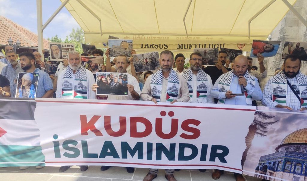 HAMAS’ın, dünyanın çeşitli bölgelerindeki Müslümanları ve insan hakları savunucularını, 23 Ağustos Cuma günü gösteri yapma çağrısında bulunması üzerine Peygamber Sevdalıları Tarsus Derneği Ulu Camii’de halkın yoğun katılımıyla basın açıklaması düzenledi.