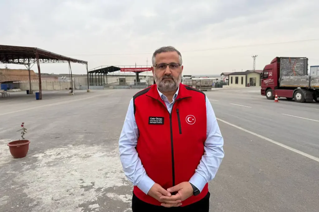 Umut Kervanı Başkan Yardımcısı Cafer Ökmen, beraberindeki heyetle Zeytindalı Gümrük Kapısı’ndan Halep’e geçti.