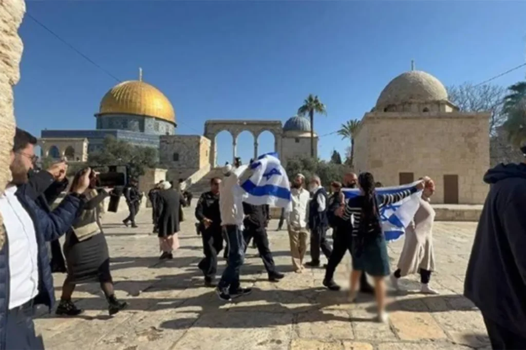 Görgü tanıklarının aktardığına göre, gruplar halinde Harem-i Şerif’e giren Yahudi yerleşimciler, polis eşliğinde kutsal alanda dolaştı.